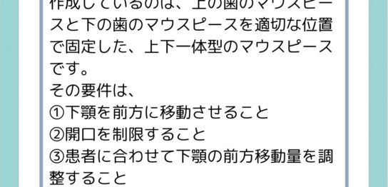 こんにちは歯科医師の山口です。 今回は睡眠時無呼吸症候群への 歯科治療として行われる口腔内装置 (O