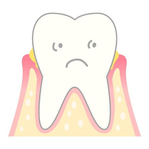 細菌の出す毒素から歯肉に炎症が起こるのが、歯周病の始まりです。歯垢を放置すると歯垢はさらに付着しやすくなり、状態は悪化してきます。特に歯肉縁下にたまった歯石に歯垢が付着すると、歯垢中の細菌は歯を支えている骨を侵していき、歯周炎を進行させ、歯が抜け落ちてしまいます。